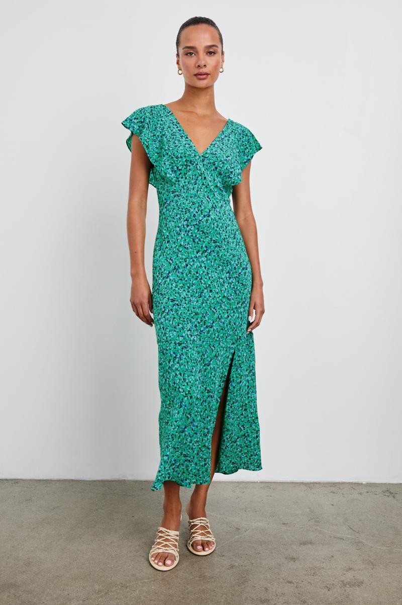 Robe Dina pour femme, verte mouchetée | Robes et barboteuses Rails
