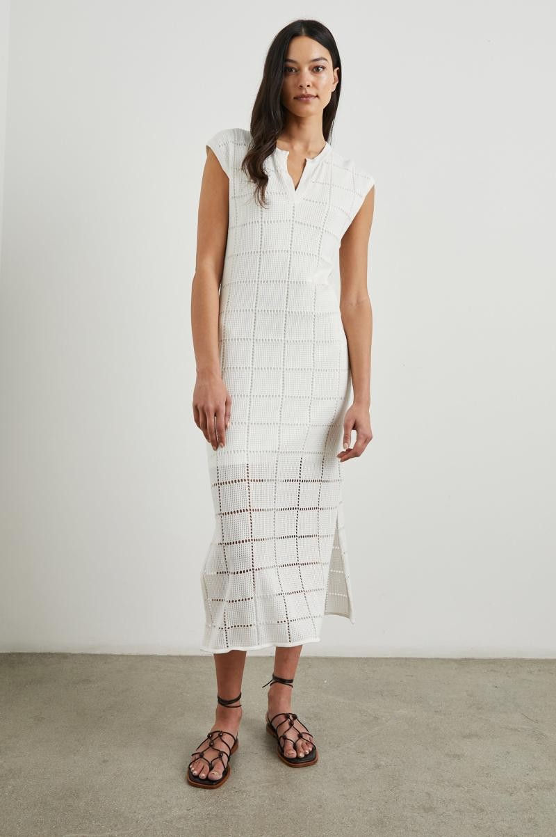 Το φόρεμα Ashley είναι ένα φόρεμα που κολακεύει τη σιλουέτα με κομψές γραμμές και ελαστικό, φαρδύ πλεκτό. Η σιλουέτα του πουλόβερ σε λευκό χρώμα είναι αμάνικη και έχει πλαϊνό σκίσιμο. Φτιαγμένο από μείγμα βαμβακιού, αποτελεί μια αναβαθμισμένη εκδοχή του άνετου, αβίαστου ντυσίματος.