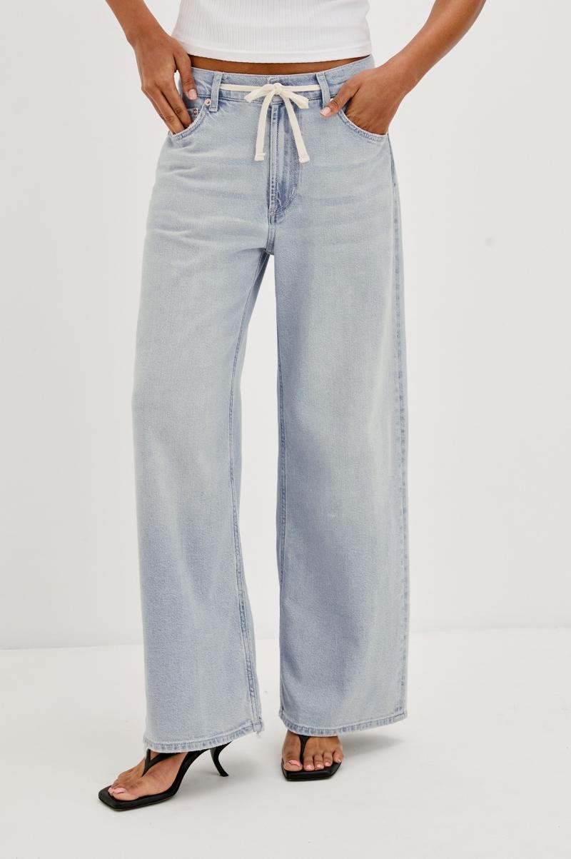 Široki Angeleno model srednjeg struka - sada u skraćenom kroju. Ovaj ležerni traper inspiriran je kalifornijskom kulturom 90-ih, s podesivim vezicama za cipele u struku.