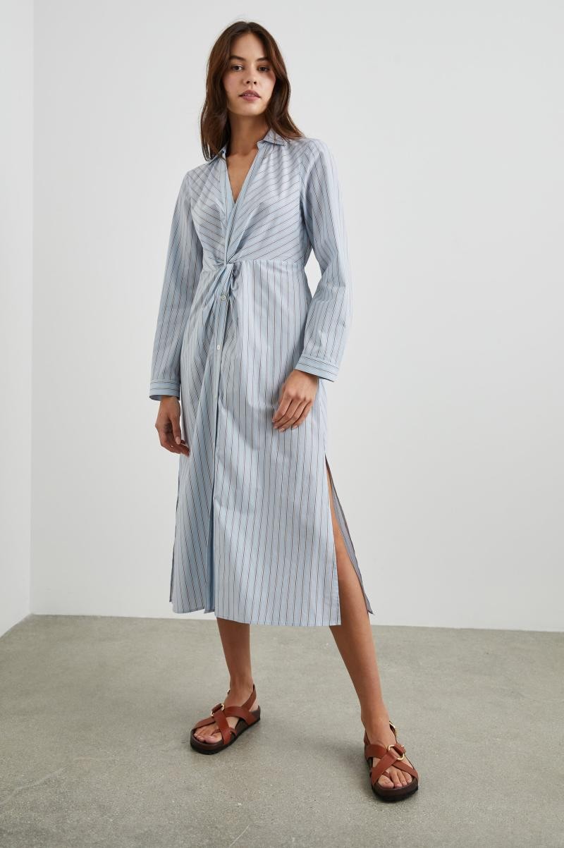 Saoire deireadh seachtaine, an bhfuil aon duine ag iarraidh? Tá an gúna Irie réidh le haghaidh aon eachtraíochta, déanta as poplin cadáis briosc. Tá muineál coiléar, muinchillí fada, agus sainmhíniú ag an choim ar an stíl stríocach seo.