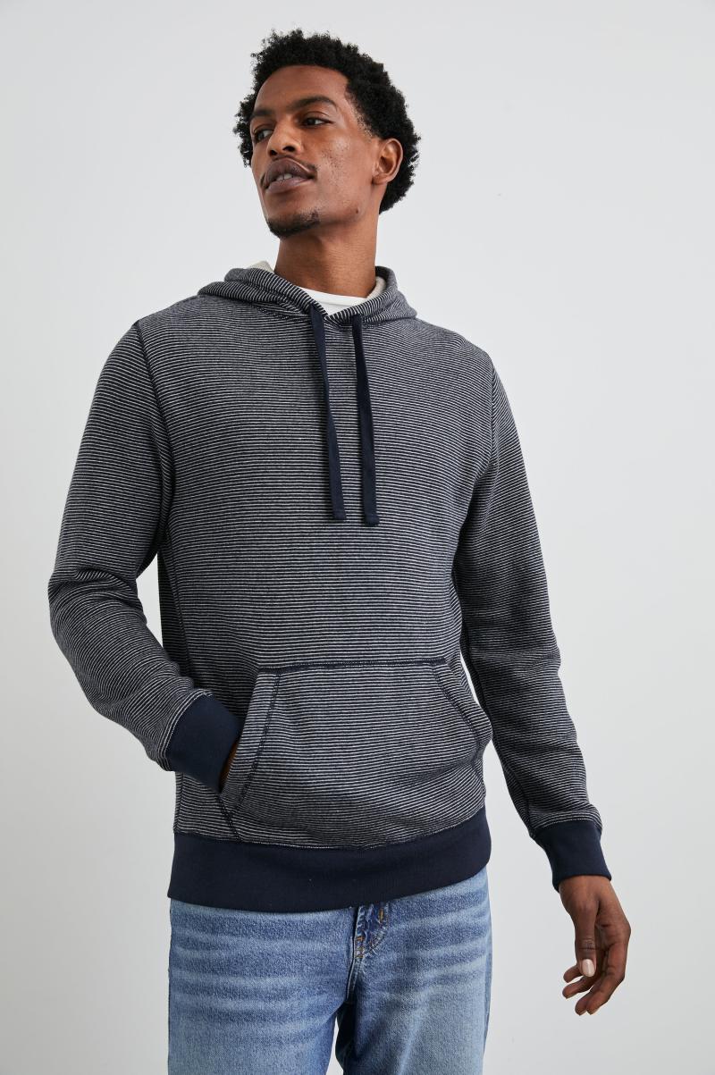 Men Calvin Hoodie Navy Cream Stripe | Rails Sweatshirts & Hoodies