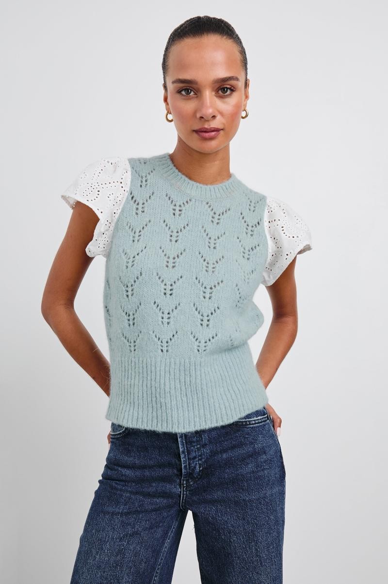 Everly är sofistikerad men ändå feminin och består av en tröjväst i ullblandning och ärmar i bomullspoplin. Denna unika topp ger illusionen av lager på lager och lyfter omedelbart vilken outfit som helst.