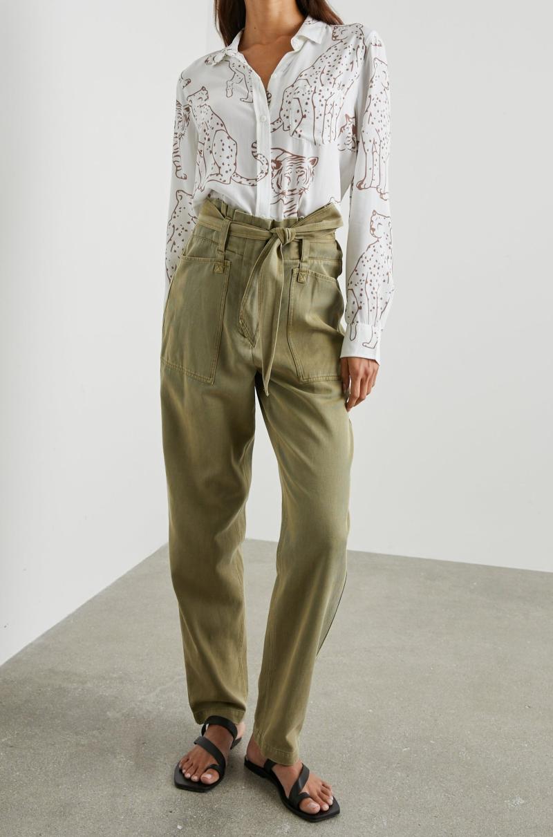 Give your go-to pants the playful upgrade they deserve. The Achilles is made from soft vintage twill and features a cigarette silhouette, large pockets, and a functional tie belt cut from the same fabric. Pair yours with a t-shirt and sneakers for a casual look, or a silky top and heels for a night out.