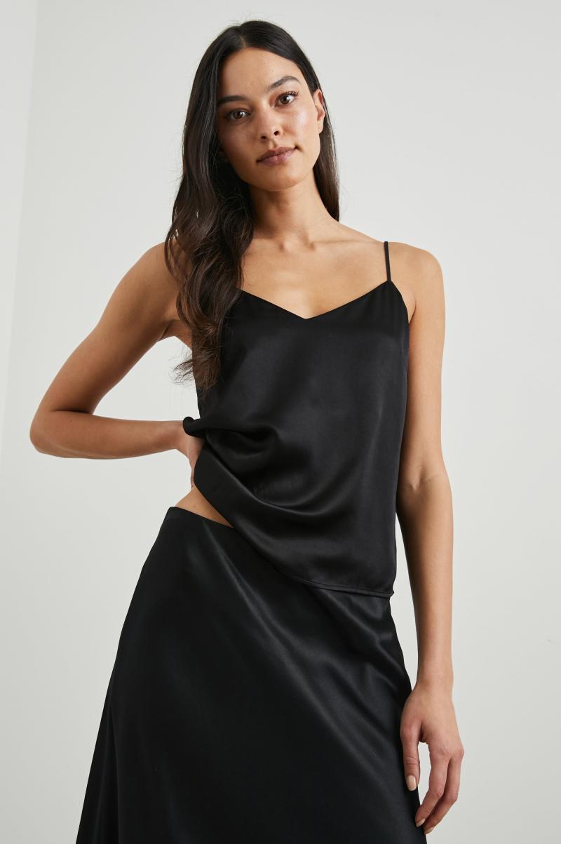 Made from super smooth lightweight crepe, the Paola is a flattering luxe tank top that looks amazing on its own and is great for layering. This tank top comes in a classic fit and features thin adjustable shoulder straps.
