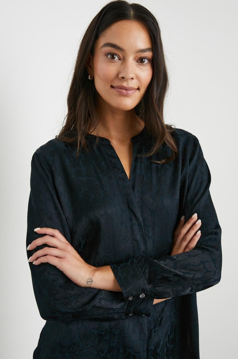 Look refined and polished from work to weekend in this classic style. Made from satin back crepe, this long sleeve pullover top features a concealed half placket, flattering split side seams, and curved shirttail.