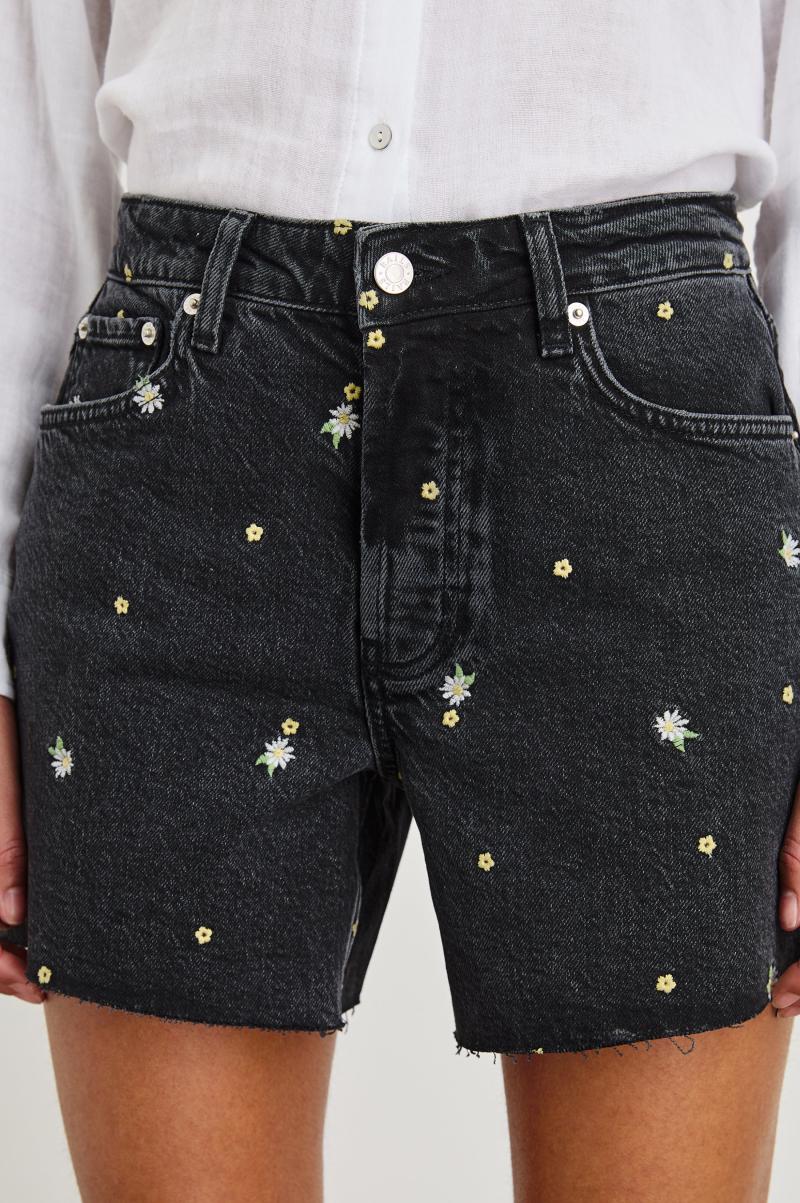 The vintage-inspired Mesa is a high-rise denim cut-off with a slightly longer inseam and relaxed fit. Finished with specialty daisy embroidery, a raw hem and button fly.