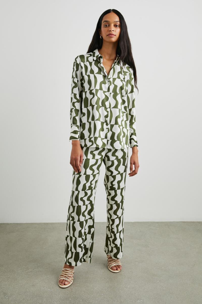Say goodbye to basic pants and hello to Damani. Made from sheen twill and featuring a funky retro print, this style ties at the waist and flows out to a full-length pant that moves with you effortlessly.