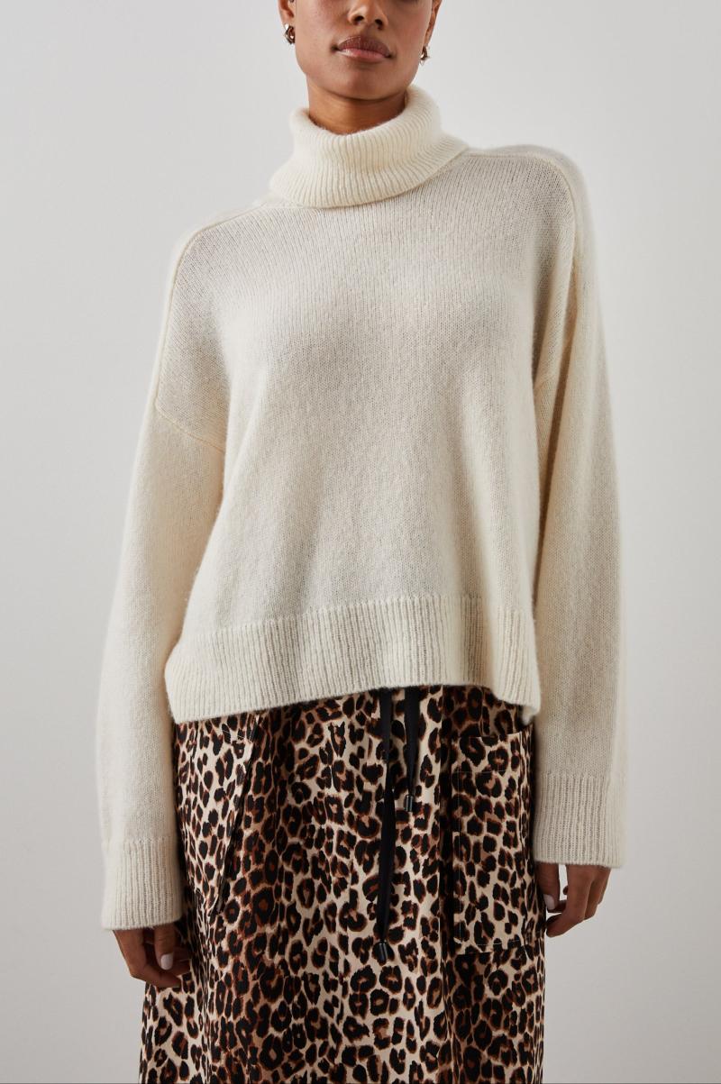 It's turtleneck season. Grab yourself an Estelle and bundle up for the cold months ahead. This ultra-soft sweater is made from a luxe cashmere blend and features oversized lining along the neck and binding at the bottom hem and sleeves.