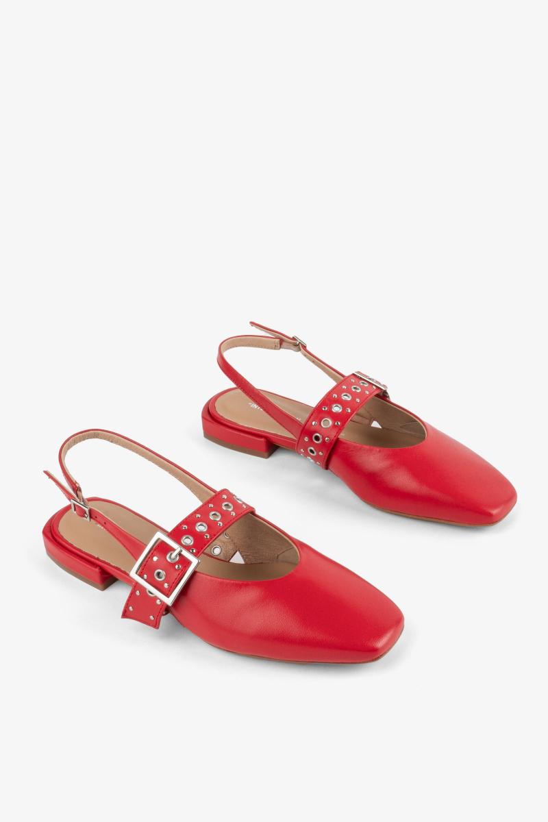 Add a rockstar edge to your favorite flats. This slingback style features a studded strap for additional support, squared toe, and one-inch heel for extended comfort. Crafted with a leather upper and lining, the Pearl Ballet Flat is built to go the distance.